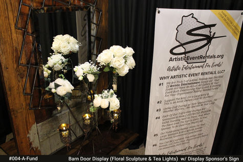The Artistic Event Rentals Fundraising Format can help your organization showcase your supporters through sponsorship opportunities at your next fundraising event while helping your organization have an even more successful fundraising event. Much like a Golf Outing Fundraiser has a Sponsor for each hole of golf, each of YOUR Sponsors would sponsor 1 of 14 different 1-0f-A-Kind Displays. But no matter the weather your organization & Artistic Event Rentals, LLC can have an event any time of the year!